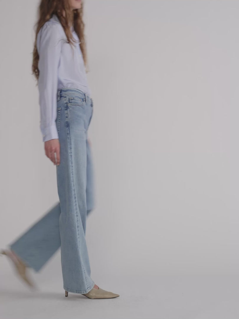 A FRAME introduction to the best-selling Palazzo silhouette, this pair is designed with a flattering high rise, fitted hip, and subtle wide-leg flare that hits at the floor. Crafted from a sustainable, ultra-stretch cotton blend for soft and comfortable wear.